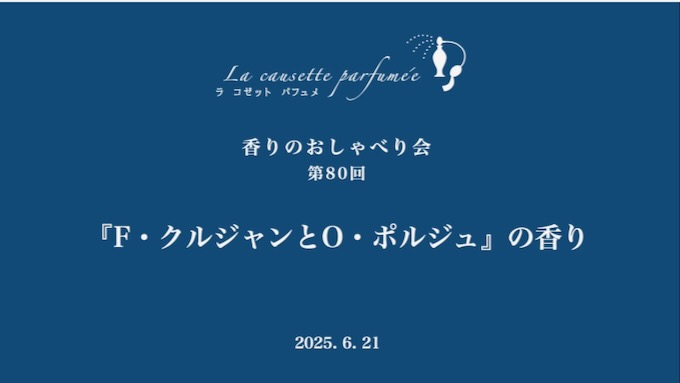 2025年6月21日(土)に 香りのおしゃべり会第80回『 F・クルジャンとO・ポルジュの香り』を開催しました。